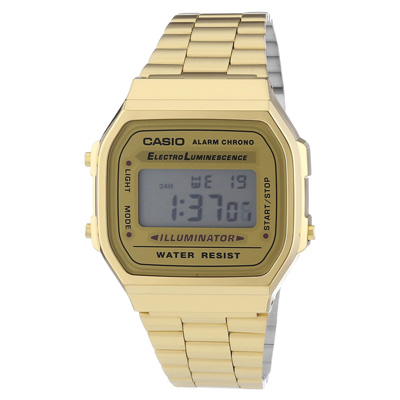 Đồng hồ Casio A168WG-9 là một mẫu đồng hồ điện tử retro vàng mang phong cách cổ điển. Đồng hồ chỉ có các tính năng cơ bản của một đồng hồ điện tử như bấm giờ, chuông hàng ngày, lịch tự động. Kháng nước cơ bản chỉ chịu được đi mưa hoặc rửa tay. Đồng hồ có cỡ mặt trung bình phù hợp với cả nam và nữ.
