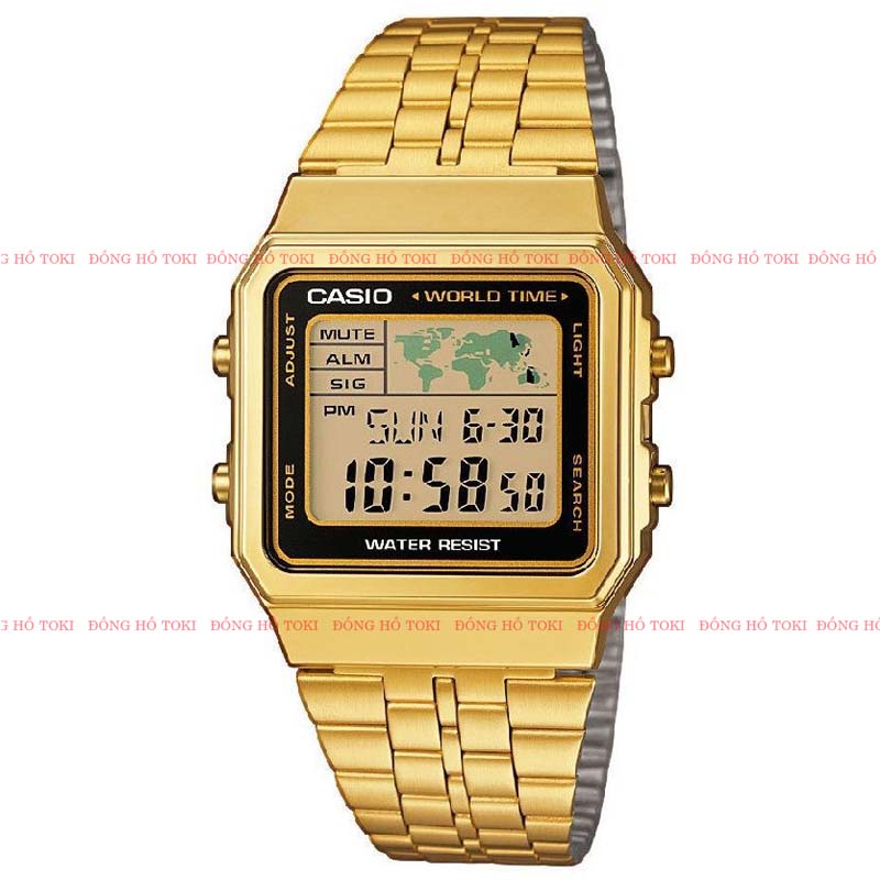 Đồng hồ casio STANDARD A500WGA-1 với thiết kế cổ điển kết hợp hiện đại, mặt vuông nhưng hiện thị thời gian theo kiểu đồng hồ điện tử, có 31 múi giờ của 48 thành phố, nên nếu đi du lịch thì bạn cũng có thể sử dụng được, rất thuận tiện.