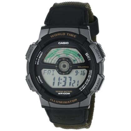 Đồng hồ Casio AE1100WB-3A thiết kế có mặt LCD được phân đôi với phần trên hiển thị bản đồ và các múi giờ, phần bên dưới hiển thị giờ và các tính năng điện tử khác như chuông, bấm giờ, giờ quốc tế, bấm ngược...Đồng hồ có khả năng kháng nước tốt 100 mét và pin 10 năm.