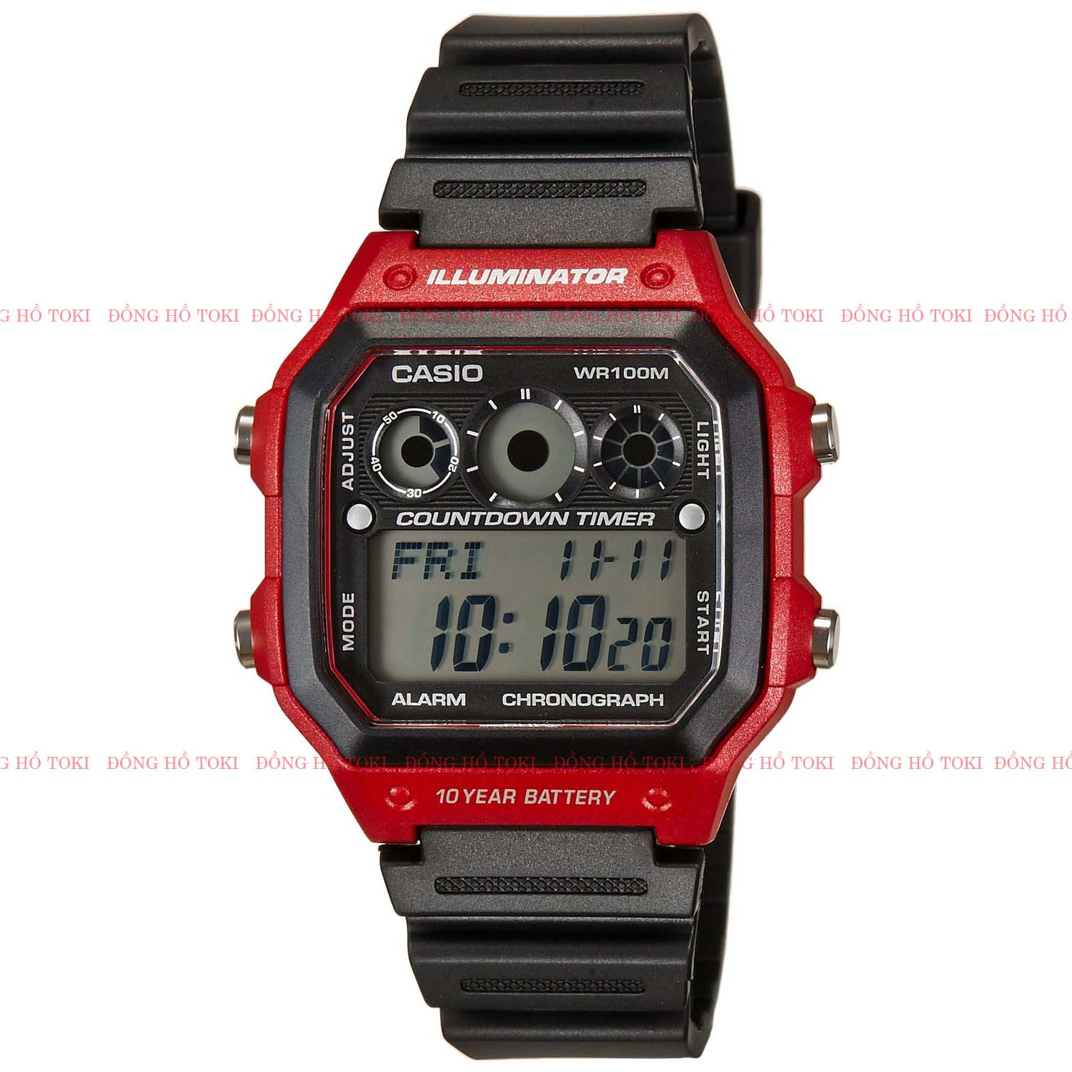 Đồng hồ casio STANDARD AE1300WH-4AV với màn hình LCD hiển thị đa chức năng. Đồng hồ được thiết kế mặt vuông bo cạnh bởi viền màu đỏ, làm cho chiếc đồng hồ rất ấn tượng. Đồng hồ có rất nhiều chức năng và đặc biệt là chịu nước 100m, lên các bạn sẽ không phải lo tháo đồng hồ khi đi bơi.