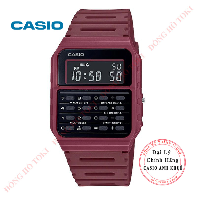 Đồng hồ nam Casio CA-53WF-4BDF là mẫu đồng hồ có thiết kế thể cá tính tông màu tím với mặt số điện tử bản âm độc đáo và bàn phím máy tính đặc biệt, bàn phím máy tính có chức năng cơ bản gồm các phép tính cộng, trừ ,nhân, chia rất tiện dụng, đồng hồ phù hợp với lứa tuổi học sinh và sinh vên thậm chí người đi làm. Đồng hồ chống nước cơ bản rửa tay đi mưa hạn chế tiếp xúc sâu với nước.