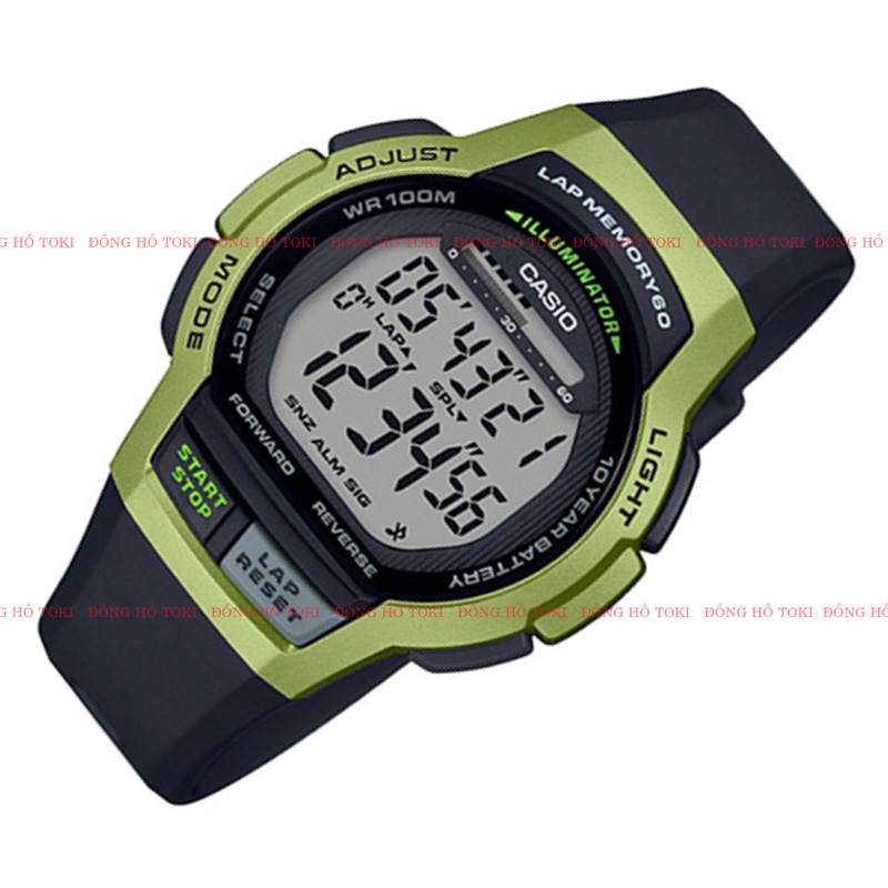 Đồng hồ nam Casio WS-1000H-3AV có thiết kế phong cách thể thao, mặt số điện tử . Đồng hồ có bộ nhớ có thể lưu tới 60 bản ghi thời gian vòng chạy. Khi đo thời gian đã trôi qua, bạn có thể hiển thị cả thời gian đã trôi qua và thời gian hiện tại trong ngày. Đèn LED giúp bạn có thể dễ dàng đọc thông tin trên đồng hồ kể cả trong bóng tối. Mũi dây đeo mang thiết kế cong giúp bạn dễ dàng đeo đồng hồ lên cổ tay hơn và dây đeo có nhiều lỗ hơn để bạn điều chỉnh kích thước sao cho vừa vặn nhất.