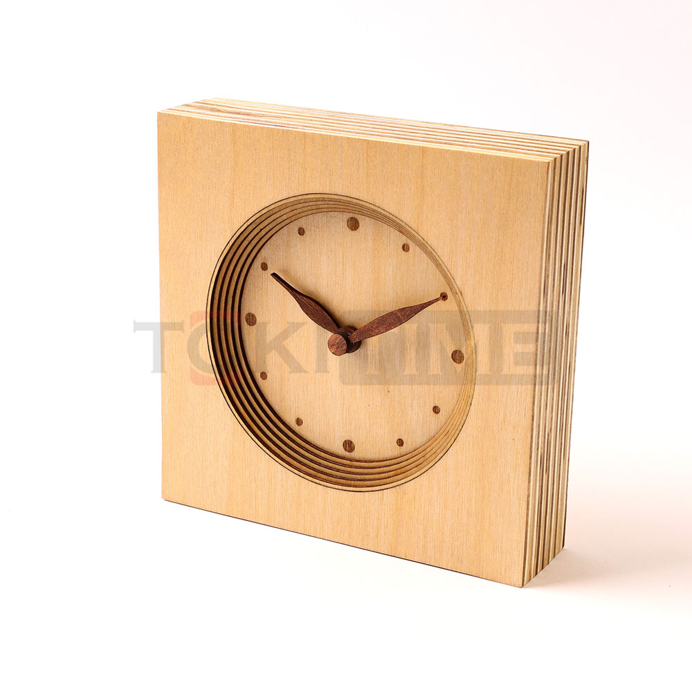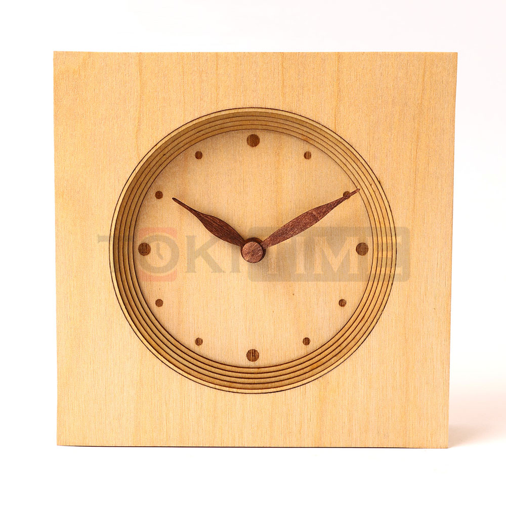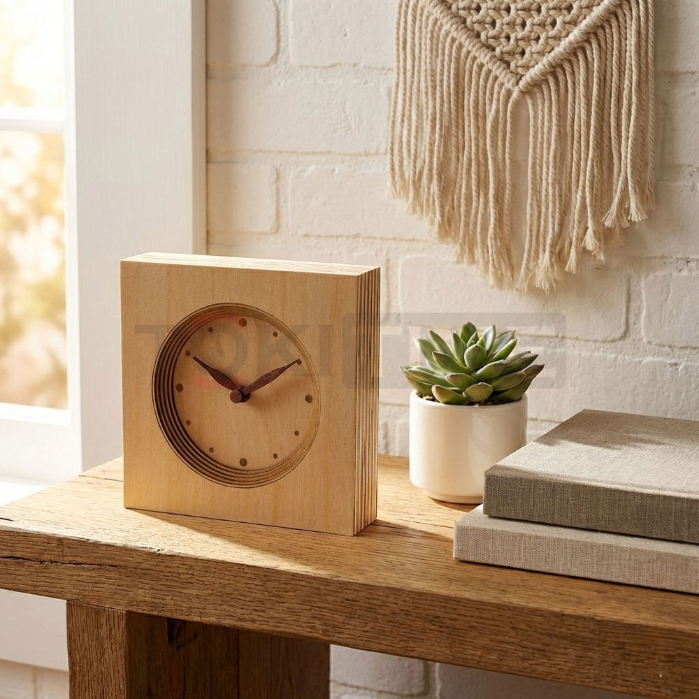 - Thiết kế tối giản nhưng đầy chiều sâu Ấn tượng đầu tiên về chiếc đồng hồ này là cấu trúc hình vuông vững chãi bao bọc lấy mặt số tròn mềm mại. Điểm nhấn đặc biệt nằm ở phần viền đồng hồ được thiết kế theo dạng "bậc thang" xếp lớp. Những vòng gỗ đồng tâm tạo nên chiều sâu thị giác, khiến mặt đồng hồ như một tác phẩm nghệ thuật 3D đầy thu hút.