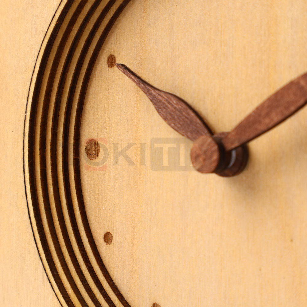 - Chất liệu gỗ Nhìn vào các góc cạnh, chúng ta có thể thấy rõ các lớp gỗ được ép tỉ mỉ, tạo nên những đường vân sọc đặc trưng ở phần hông. Sắc nâu trầm ấm của vỏ ngoài tương phản nhẹ nhàng với mặt đồng hồ màu gỗ sáng, giúp sản phẩm dễ dàng nổi bật trong bất kỳ không gian nào. Chất liệu gỗ không chỉ mang lại độ bền mà còn đem đến cảm giác ấm áp, thư thái cho người sử dụng.