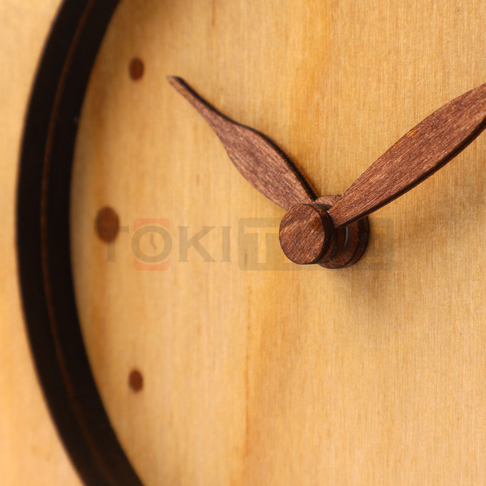 - Chất liệu gỗ Nhìn vào các góc cạnh, chúng ta có thể thấy rõ các lớp gỗ được ép tỉ mỉ, tạo nên những đường vân sọc đặc trưng ở phần hông. Sắc nâu trầm ấm của vỏ ngoài tương phản nhẹ nhàng với mặt đồng hồ màu gỗ sáng, giúp sản phẩm dễ dàng nổi bật trong bất kỳ không gian nào. Chất liệu gỗ không chỉ mang lại độ bền mà còn đem đến cảm giác ấm áp, thư thái cho người sử dụng.