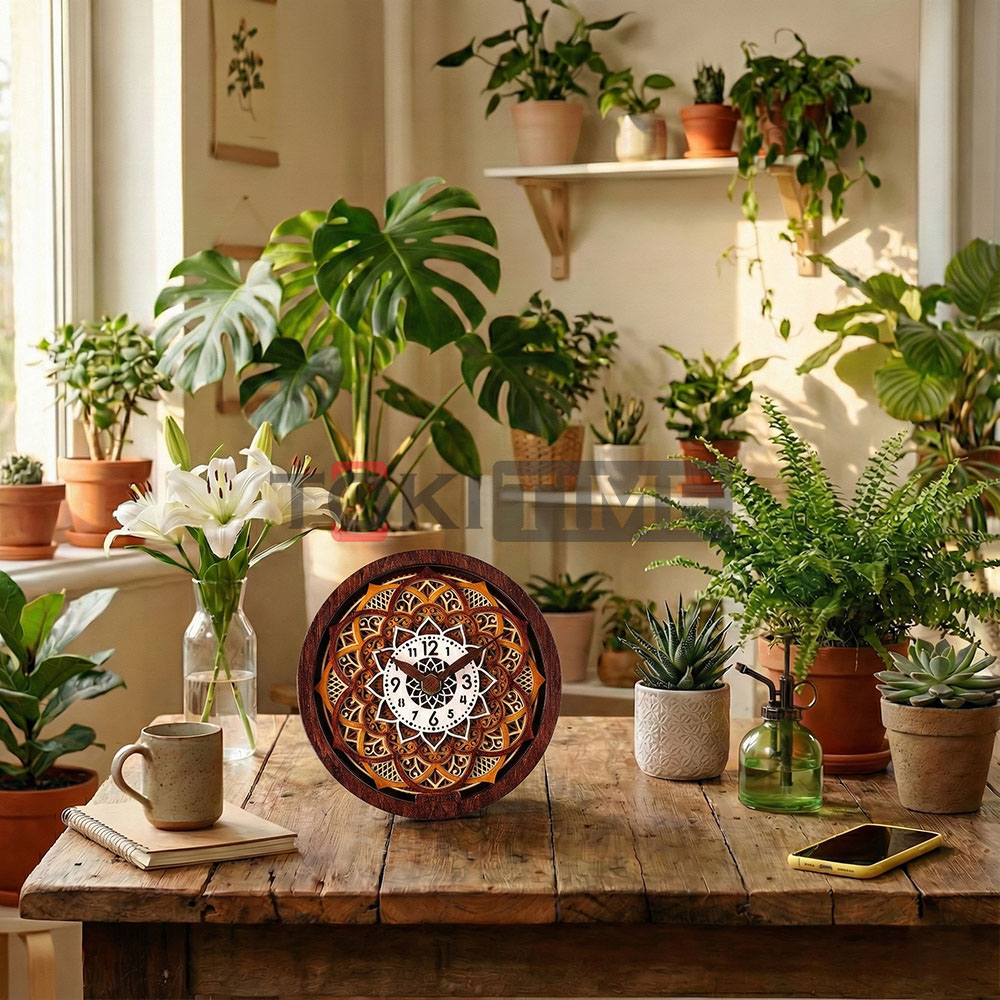 - Cấu trúc 3D 8 lớp gỗ cao cấp Sử dụng 8 lớp gỗ Plywood tinh chọn. Các lớp được cắt – xếp – ghép tỉ mỉ, tạo họa tiết hoa sắc nét và sang trọng. Mang lại hiệu ứng thị giác đặc biệt mà đồng hồ thường không có.