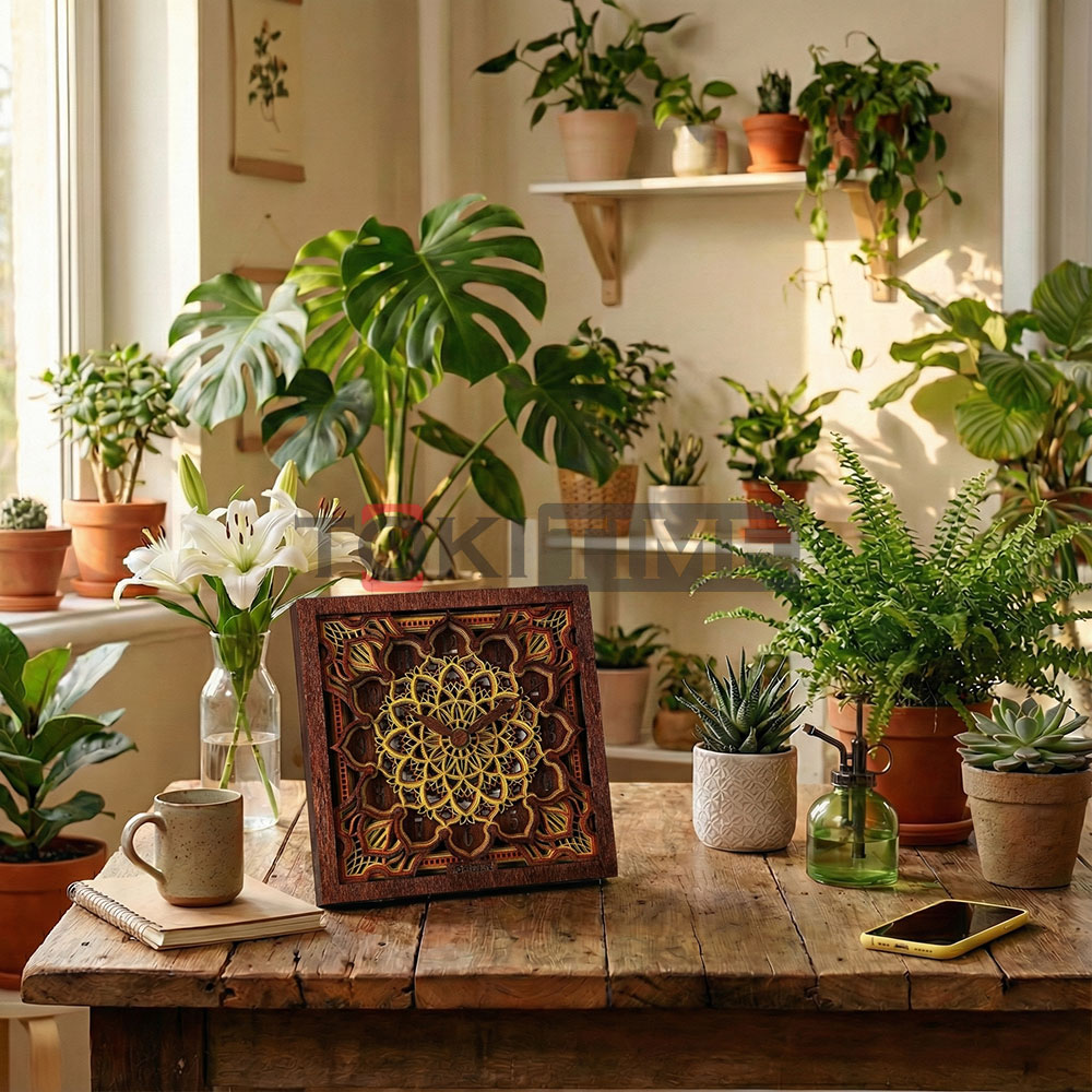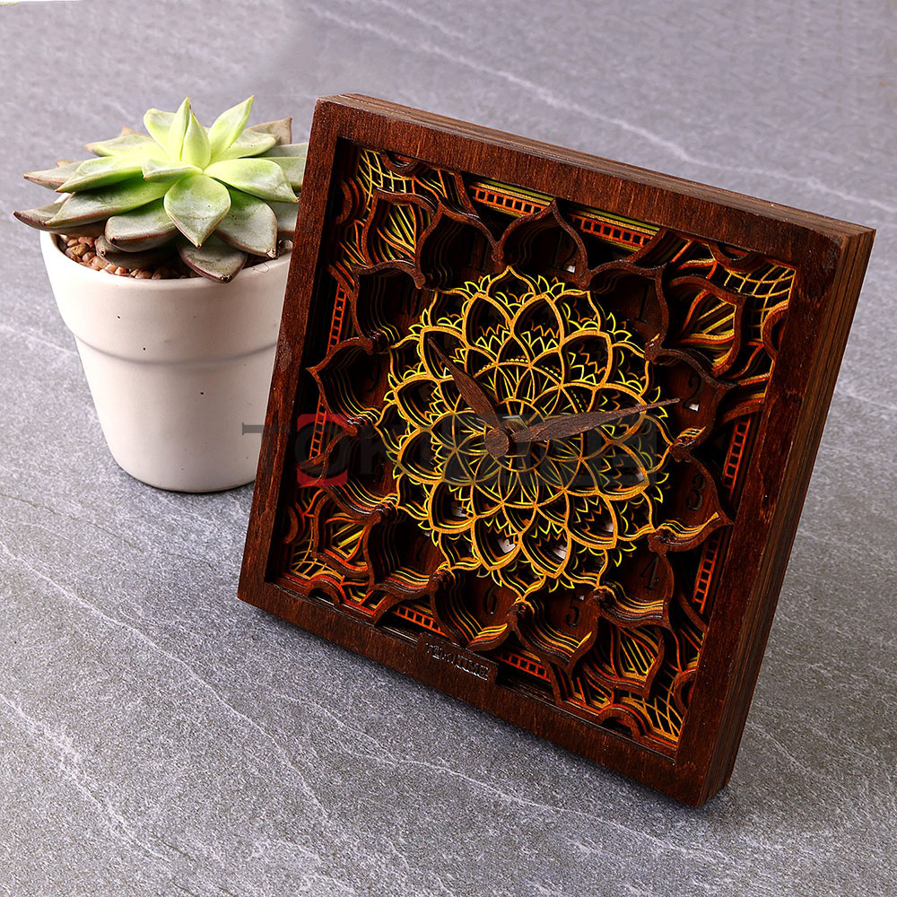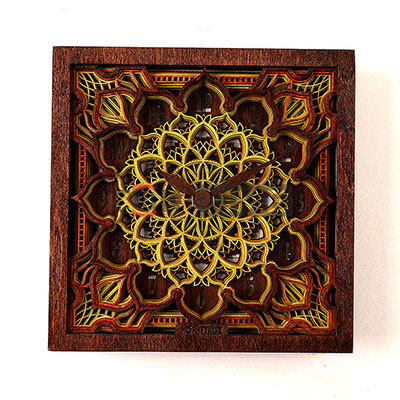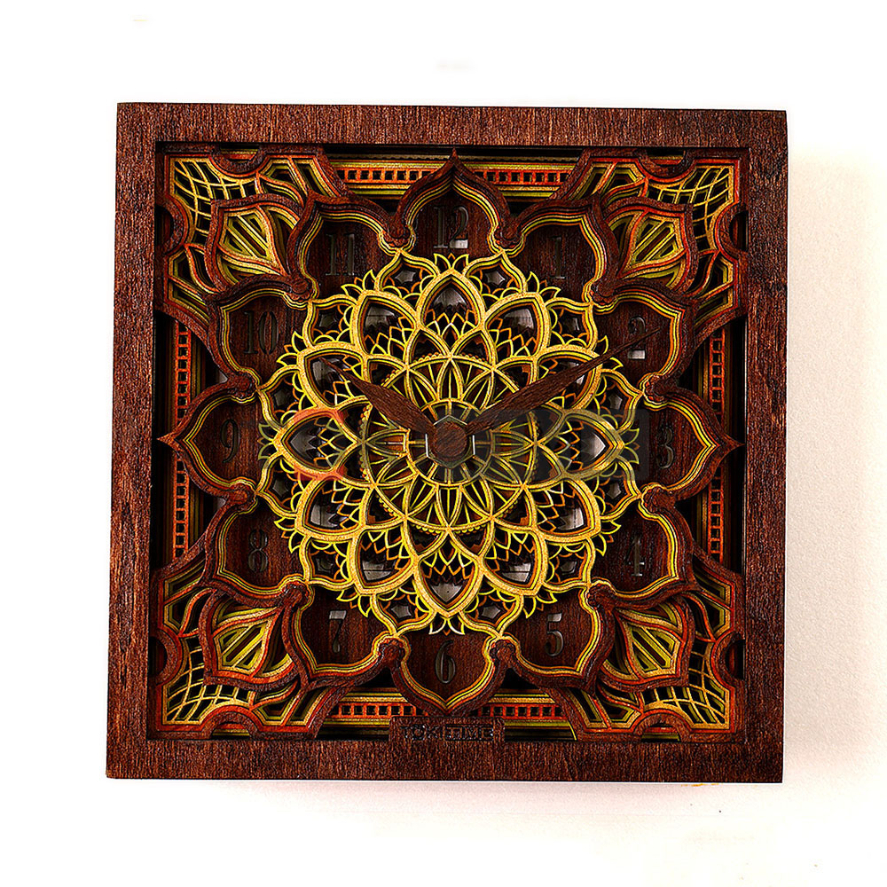 - Sản phẩm là sự kết hợp giữa nghệ thuật cắt laser hiện đại và kỹ năng thủ công tỉ mỉ, tạo nên một chiếc đồng hồ gỗ 3D độc đáo, cuốn hút từ mọi góc nhìn. Thiết kế họa tiết Mandala xếp lớp mang lại hiệu ứng thị giác sâu, sang trọng và đầy tính nghệ thuật.