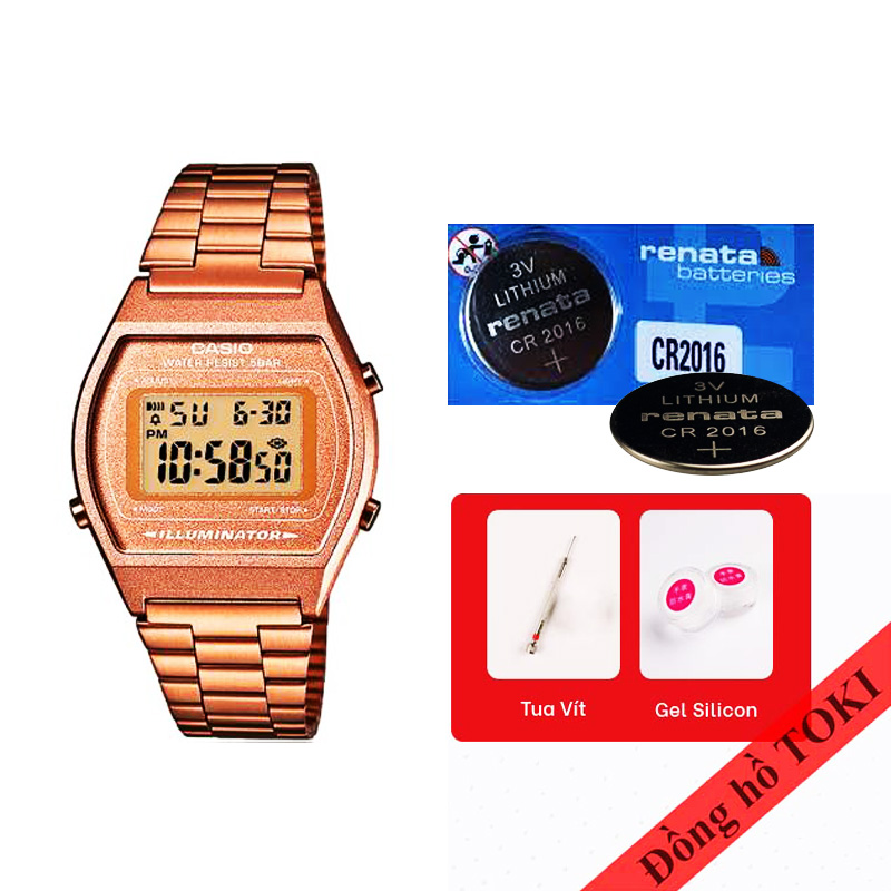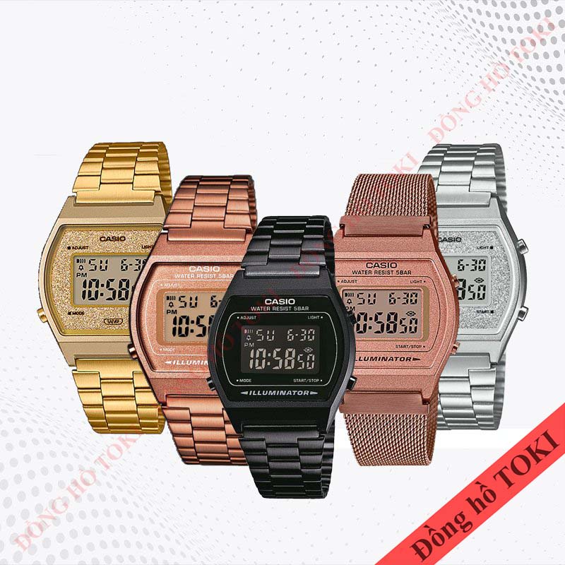 - Casio B640WC là một trong những mẫu cơ bản giá rẻ của casio, hãng hiện bán ra nhiều màu, mỗi màu được phân biệt bằng các mã đuôi khác nhau tuy nhiên tất cả các mẫu đều cùng trang bị một model máy chung và sử dụng pin CR2016.
