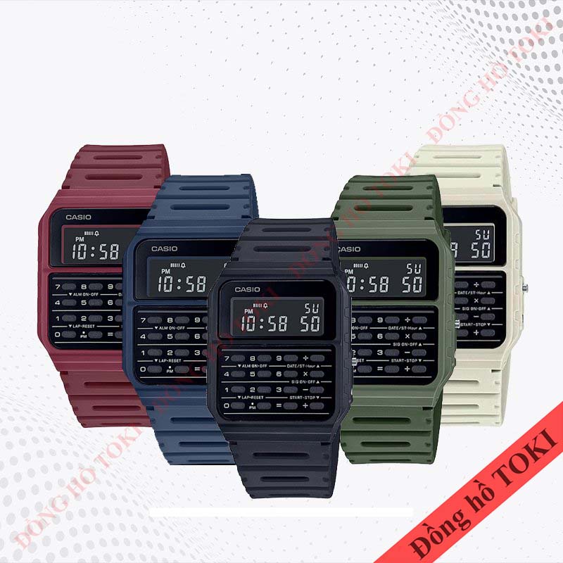 - Casio CA-53 là một trong những mẫu cơ bản giá rẻ của casio, hãng hiện bán ra nhiều màu, mỗi màu được phân biệt bằng các mã đuôi khác nhau tuy nhiên tất cả các mẫu đều cùng trang bị một model máy chung và sử dụng pin CR2016.