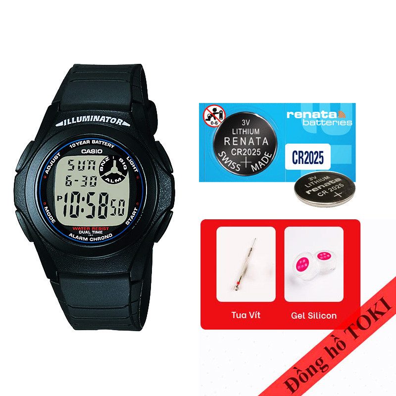 - Casio F-200 là một trong những mẫu cơ bản giá rẻ của casio, hãng hiện bán ra nhiều màu, mỗi màu được phân biệt bằng các mã đuôi khác nhau tuy nhiên tất cả các mẫu đều cùng trang bị một model máy chung và sử dụng pin CR2025.