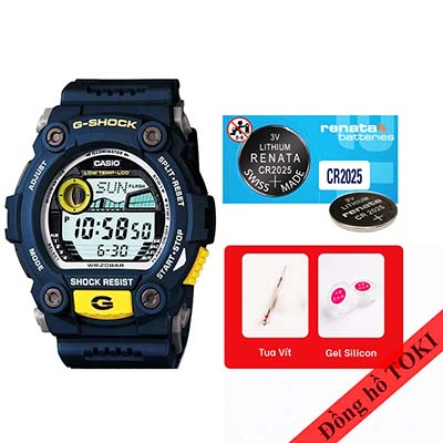 ● G-7900 là một trong những dòng Casio G-shock cơ bản nhất và có rất nhiều màu, mỗi màu được phân biệt bằng các mã đuôi khác nhau tuy nhiên tất cả các mẫu đều cùng trang bị một model máy chung và sử dụng pin CR2025. Bạn có thể mua pin lẻ hoặc cả bộ phụ kiện gồm tuốc vít sửa đồng hồ cơ bản và gel tra gioăng cao su giúp dưỡng gioăng và duy trì chống nước.