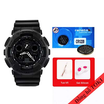 ● GA-100 là một trong những dòng Casio G-shock cơ bản nhất và có rất nhiều màu, mỗi màu được phân biệt bằng các mã đuôi khác nhau tuy nhiên tất cả các mẫu đều cùng trang bị một model máy chung và sử dụng pin CR1220. Bạn có thể mua pin lẻ hoặc cả bộ phụ kiện gồm tuốc vít sửa đồng hồ cơ bản và gel tra gioăng cao su giúp dưỡng gioăng và duy trì chống nước.