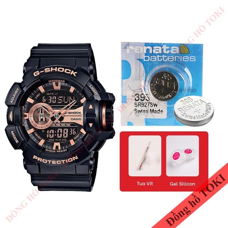 ● Casio g-shock GA-400 là một trong những mẫu đồng hồ của casio, hãng hiện bán ra nhiều màu, mỗi màu được phân biệt bằng các mã đuôi khác nhau tuy nhiên tất cả các mẫu đều cùng trang bị một model máy chung và sử dụng pin SR927SW.