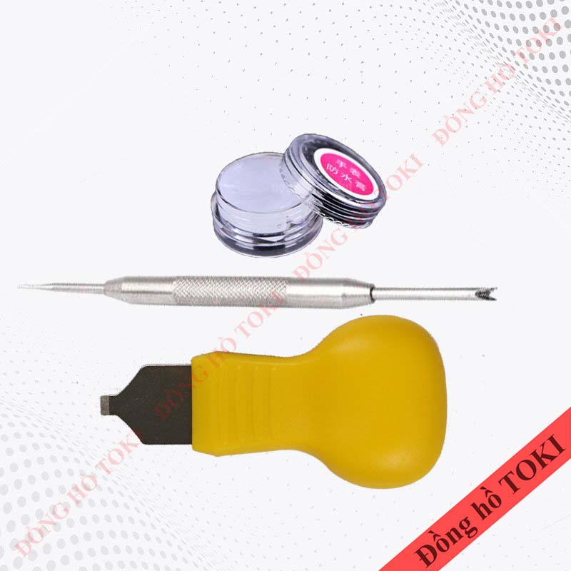 - Bạn có thể mua pin lẻ hoặc cả bộ phụ kiện gồm dao cạy đáy, tuốc vít sửa đồng hồ cơ bản và gel tra gioăng cao su giúp dưỡng gioăng và duy trì chống nước.